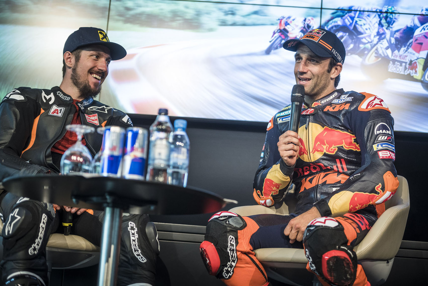 Marcel Hirscher: „Der Moment, der mich am meisten begeistert hat war, wenn man merkt, dass von den 270 PS bei einem Gewicht von 170 Kilogramm und mit mir drauf noch immer genügend übrig ist. Das ist das Schnellste und Ärgste, was ich je erlebt habe! Diese Beschleunigung ist unvergleichlich. Es fühlt sich komplett schräg an – fast nicht zu beschreiben. Mensch und Maschine sind weg und der Geist ist hinterher. Johann hat den Asphalt mit dem Zeigefinger gestreichelt und mir gezeigt: ,Runter mit dir!’ Ich hab’ mir nur gedacht, der ist zweifacher Weltmeister, ich werd’ schon nicht umfallen! Für ihn ist es ungefähr so, wie für mich, wenn ich einem Deutschen Skifahren lernen müsste! (mit Augenzwinkern, Anm.) In meiner Zeit als Skifahrer habe ich einiges erleben dürfen. Aber das heute überschreitet eine Grenze. Wenn man am eigenen Leib spüren darf, was diese Jungs leisten. Ich habe riesigen Respekt davor. Für mich ist es ein Ausflug, für den ich mich nur bedanken kann!. Ich bin sicher einer von ganz wenigen auf diesem Planeten, die auf so ein Motorrad dürfen, obwohl sie nix können. Andere haben den Wunsch, einmal in einem Formel-1-Auto zu sitzen. Aber für mich war das definitiv immer MotoGP. Darum geht heute ein Traum für mich in Erfüllung. Das Ziel war, dass es halbwegs ansprechend ausschaut, wenn ich auf der Start-Ziel-Geraden fahre. Danke an Jürgen (Instruktor Red Bull Ring, Anm.) und Johann. Beim Skifahren ist die Körperposition immer zentral. Auf dem Bike musst du deutlich mehr mit dem ganzen Körper mitgehen. Am Anfang war das schon eine Umstellung. Wenn man es nüchtern betrachtet, war das nur Spazierenfahren. Jeder hat sein Limit. Für mich war es schon Rennfahren. Andere Leute brauchen dafür länger über den Ganslernhang. Aber es macht unglaublich viel Spaß und das ist für mich heute das Wichtigste. Bewundernswert sind vor allem so Leute, wie der Valentino Rossi. Der fährt gefühlt seit ewigen Zeiten auf diesem Niveau. Da gibt’s Fotos, die sind ja wirklich aus dem Jahre Schnee, wo er schon gewonnen hat. Wenn es sich ausgeht, schau’ ich mir die Rennen an, oder auf alle Fälle die Zusammenfassung auf ServusTV, wenn es sich nicht ausgeht. Es fühlt sich irgendwie dreidimensional an. Du spürst den Wind, großartig. Meine Intention war nicht, auf die Zeit zu schauen, der Genuss steht absolut im Vordergrund. Es gibt keinen Tacho. Die wilden Hunde fahren nach Gefühl.“