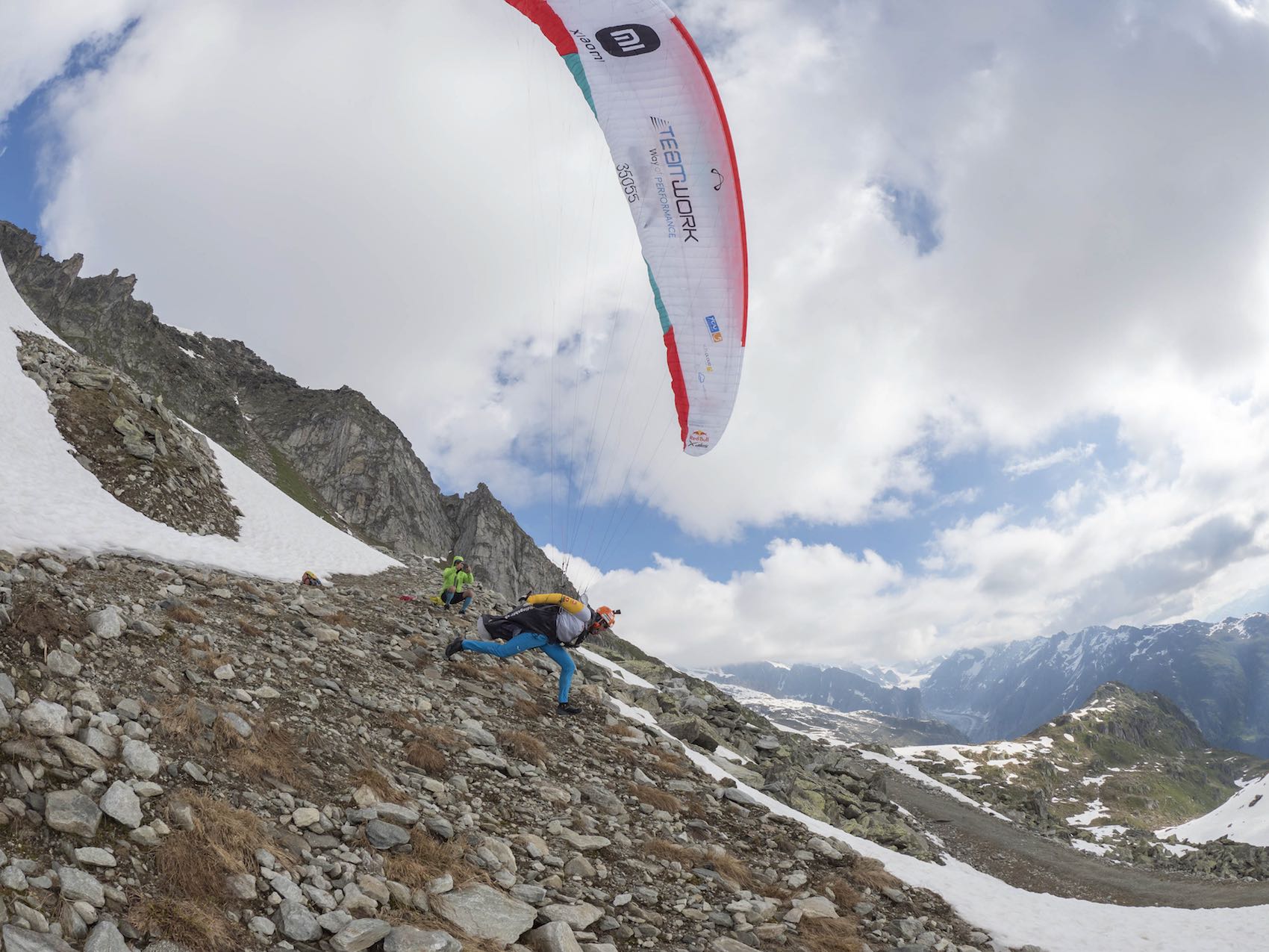 Dazu gehören die französischen Athleten Maxime Pinot (FRA1) und Benoît Outters (FRA2) sowie Simon Oberrauner (AUT2) und Patrick von Känel (SUI2), die nur 20 km voneinander getrennt waren, als sie am Nachmittag Turnpoint 10, Piz Palü, erreichten. Vor allem der Steirer Simon Oberrauner zeigt sich in sehr guter Form, und mischt nach wie vor im Kampf um die Podiumsplätze mit.