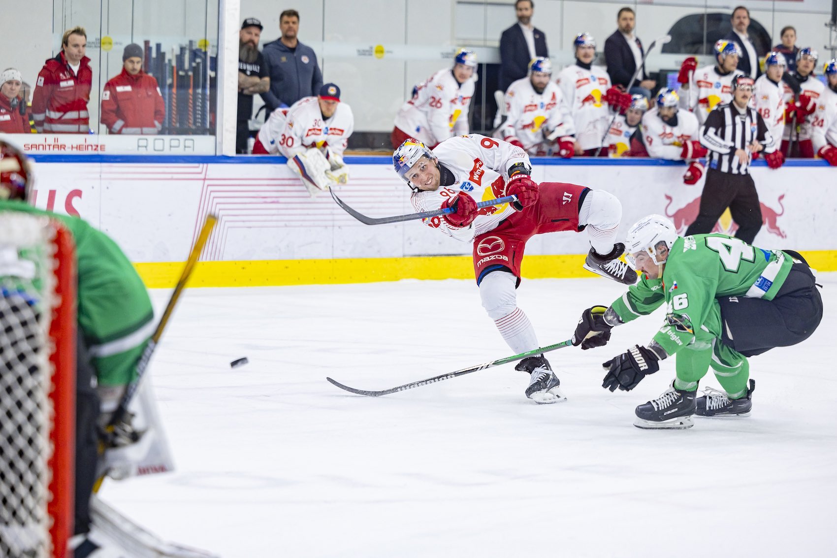 Seit dieser Woche trainieren die Red Bulls wieder als komplette Mannschaft, nachdem in den letzten zwei Wochen sieben österreichische Nationalspieler wegen der Olympia-Qualifikation gefehlt haben. Der österreichische Meister holt sich in den letzten drei Tagen vor dem CHL-Start noch den letzten Feinschliff, bevor es am Freitag in die Partie gegen Skellefteå AIK geht. Die Red Bulls treffen dabei auf eine der besten Mannschaften Europas – der schwedische Meister hat es in der letzten Saison auch in der CHL bis ins Finale geschafft – und bereiten sich entsprechend auf eine schwere Partie vor.